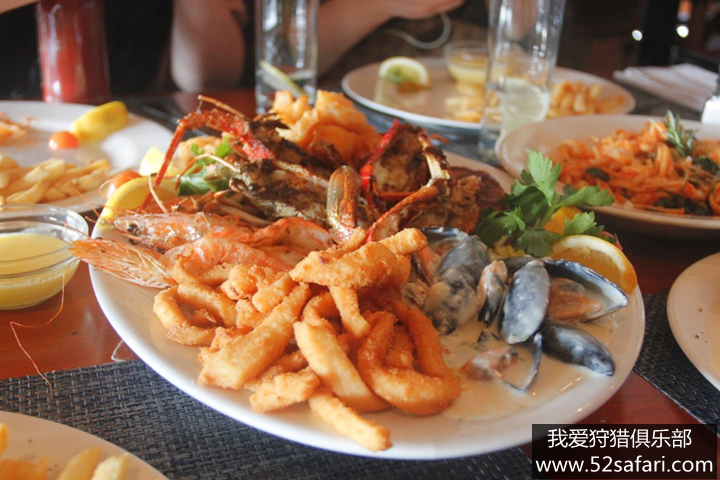 看完日落回到别墅吃晚饭继续喝酒为了庆祝我们很大的狩猎成功!