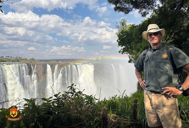 结束南非狩猎后,我们飞往津巴布韦维多利亚瀑布,入住历史悠久的维多利亚瀑布酒店——这座建于1904年的奢华五星级酒店就坐落于瀑布旁。我常带客户入住于此,最早可追溯至1987年。虽然小镇风貌已巨变,但酒店仍保持着当年的风采。