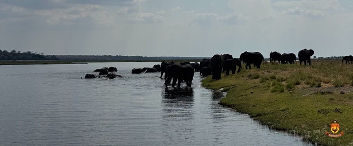 隔日我们驱车前往博茨瓦纳,搭乘游船在乔贝河上进行全天野生动物巡游。如预期所见,河岸遍布大象、非洲野牛、河马、水羚、驴羚等平原动物。