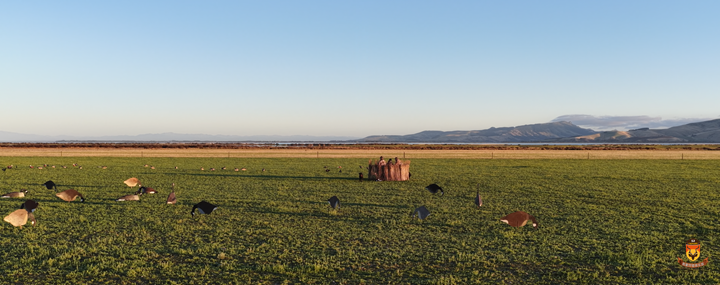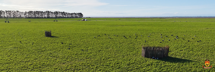 我们决定主动出击,不再被动等待。我们发现了一片苜蓿地,里面挤满了天堂鸭,数百只鸭子仿佛在享用自助餐般埋头啄食。那天下午,我们再次设好隐蔽点,这一次,运气转了。鸭子成群涌入,我们收获颇丰。
